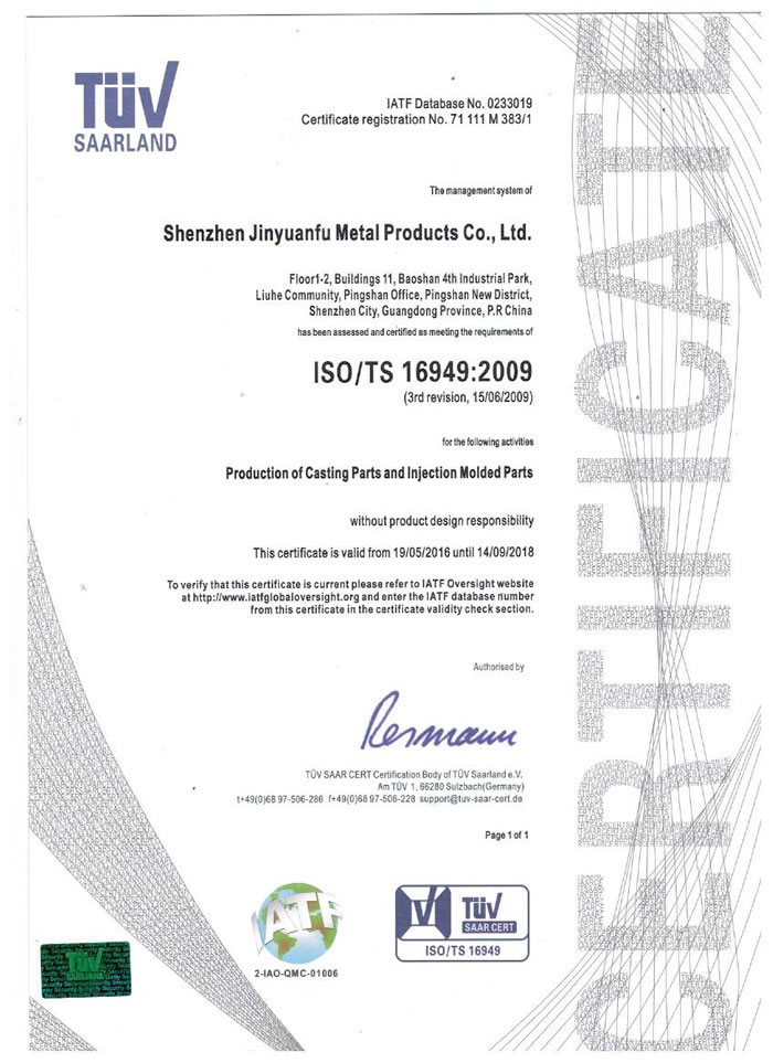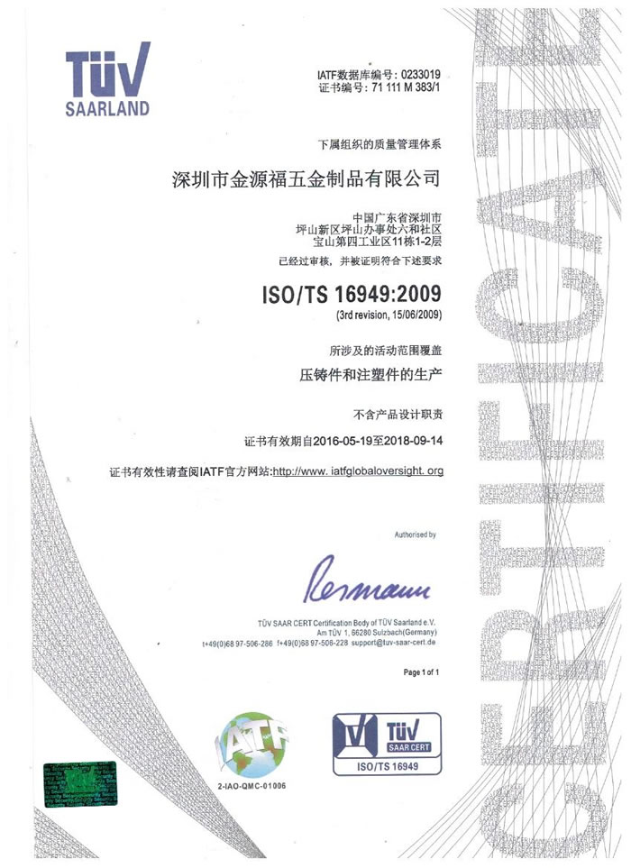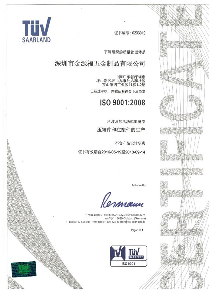 深圳市金源福五金制品有限公司成立于2003年。公司擁有8000多平方米生產(chǎn)廠地、開發(fā)與管理精英人才、技術專業(yè)、設備精良、交通便利、服務周全、具體設計、開發(fā)、制模、出樣、生產(chǎn)到成品出貨一體化模式生產(chǎn)廠家。已通過ISO9001:2008ISO1440/TS16949:2009國際質(zhì)量體系認證。專業(yè)生產(chǎn)鋅合金壓鑄、鋁合金壓鑄產(chǎn)品、汽車配件、汽車后視鏡支架、車載導航散熱器、LED散熱器、LED燈罩、數(shù)碼電子五金結(jié)構(gòu)件、家具五金裝飾件、標牌(LOGO)等五金壓鑄產(chǎn)品。